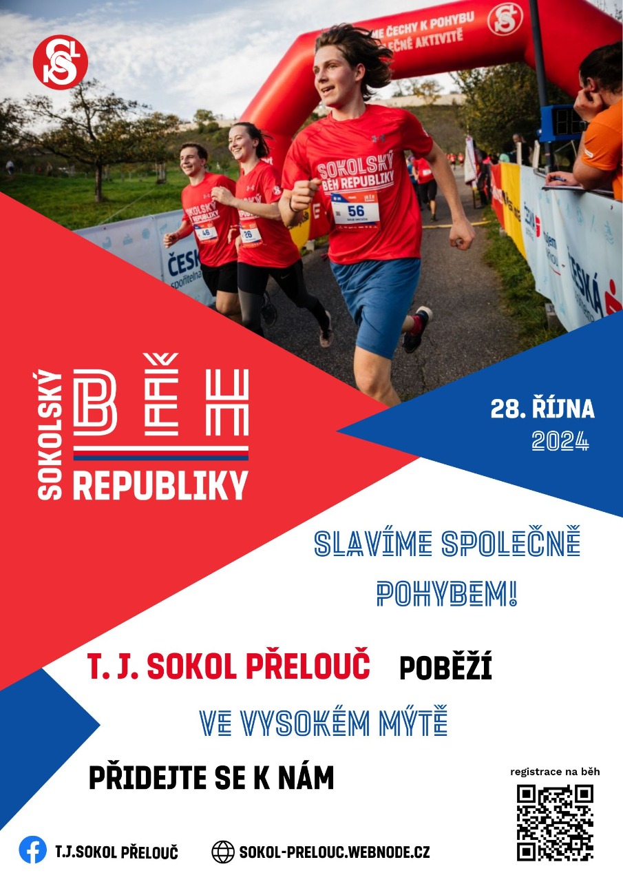 Letos proběhne již šestý ročník akce Sokolský běh republiky. Koná se pravidelně každý rok od roku 2019, vždy 28. října na oslavu založení republiky. Sokolský běh republiky je pořádán především sokolskými jednotami na mnoha místech republiky. T. J. Sokol Přelouč se letos zúčastní běhu ve Vysokém Mýtě. Nemusíte být nutně sokol, abyste se mohli také zúčastnit této krásné akce a oslavit svátek pohybem. Přidejte se k nám.